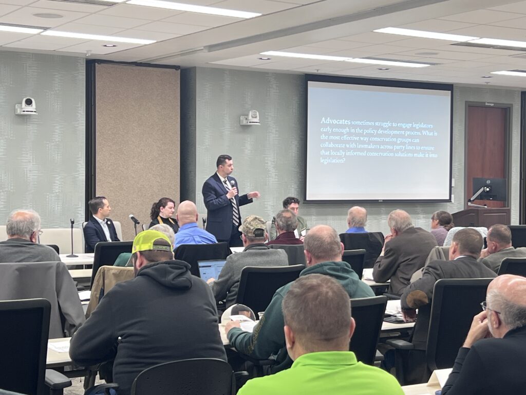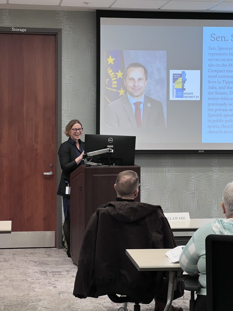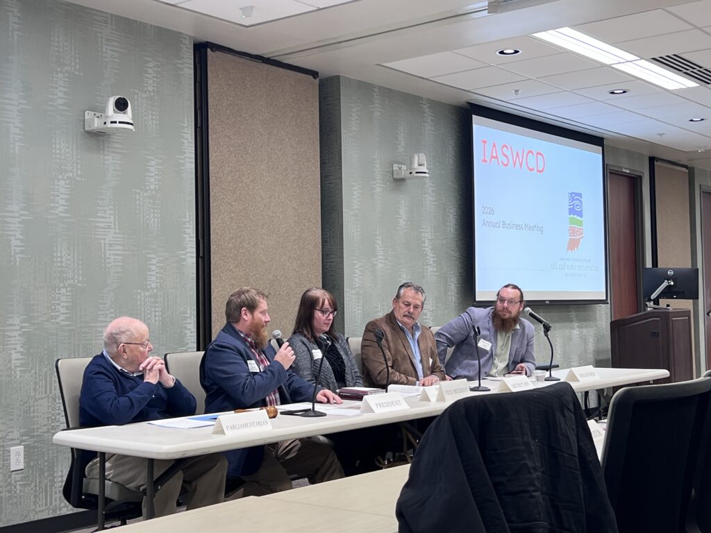 The December 19, 2025 IASWCD Business Meeting featured a panel with lively discussion and information regarding talking and relating to legislators and policymaking. Senators Fady Qaddoura and Spencer Deery shared their insights from both sides of the aisle. Dan Boritt, Executive Director, Indiana Wildlife Federation and Desi Rybolt, Indiana Conservation Voters, joined the panel and provided a “layman’s” perspective on educating and engaging with legislators.